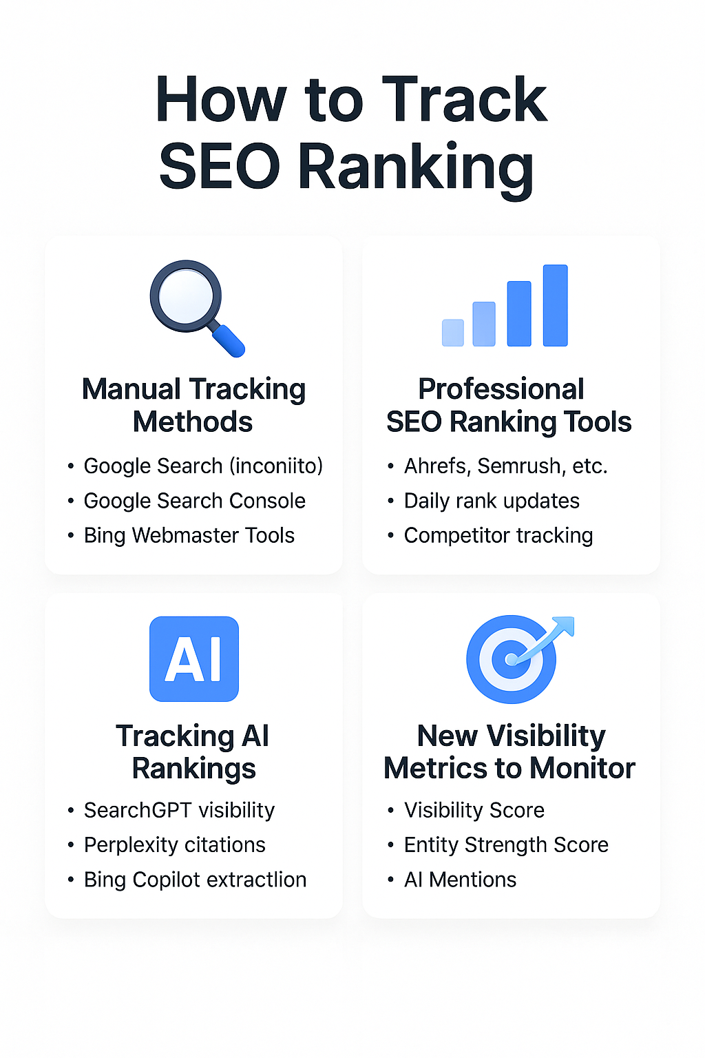 But in 2025, rankings must be monitored across traditional SERPs and AI-driven search systems.