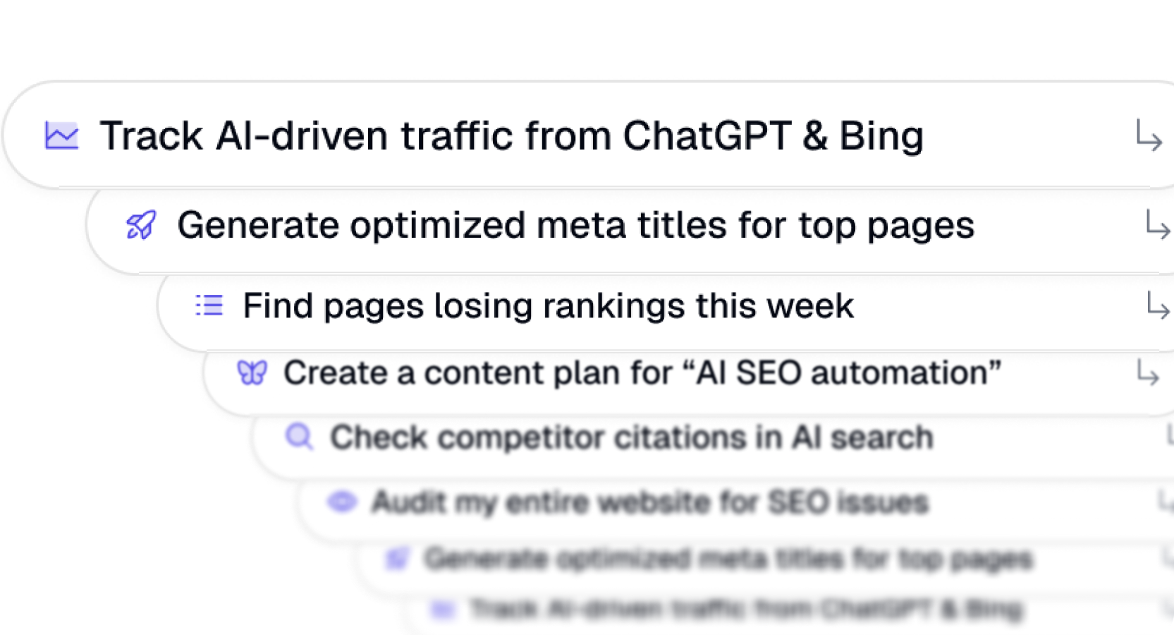Launch expert-level SEO tasks instantly — from audits to AI traffic tracking — across all your tools, data, and clients in one place.