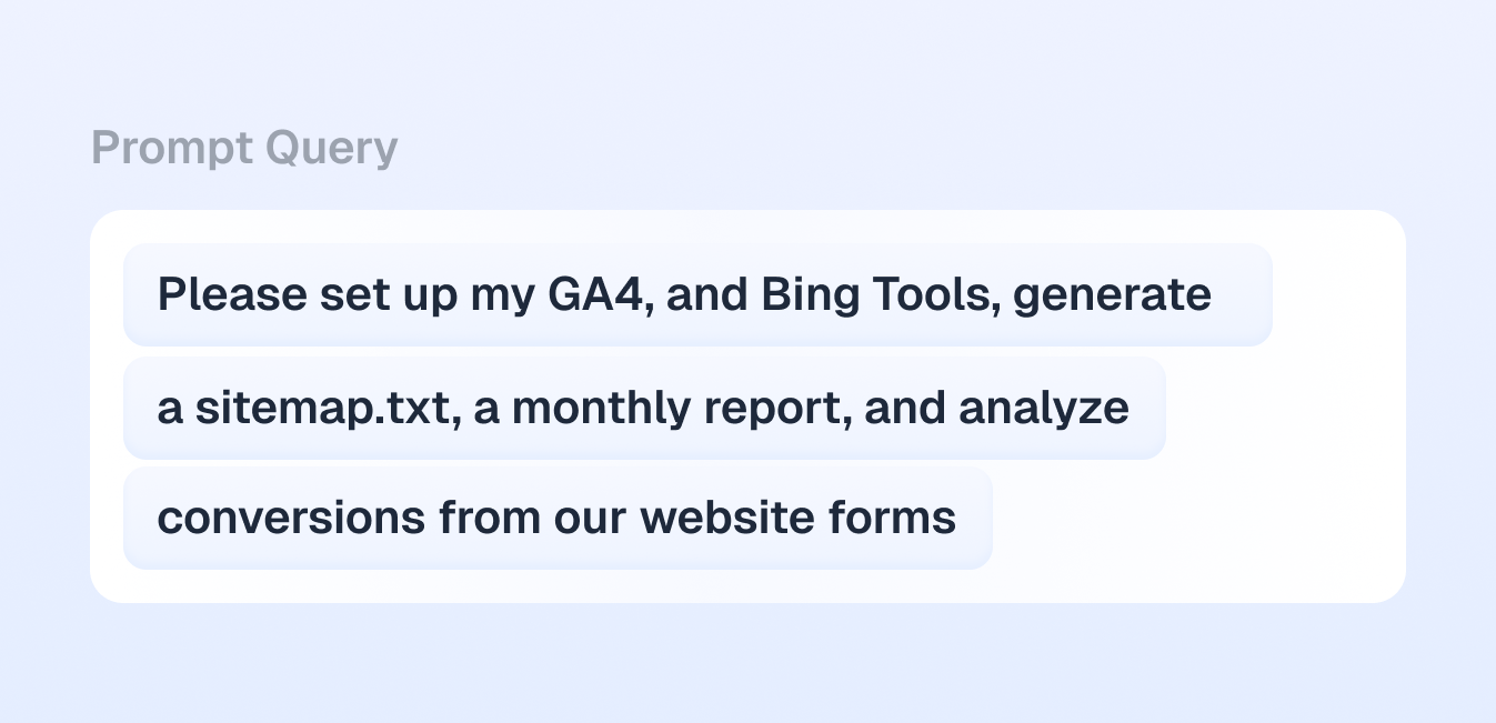 Connect GA4, GSC, Bing, CMS, and CRM via OAuth with enterprise-grade encryption.